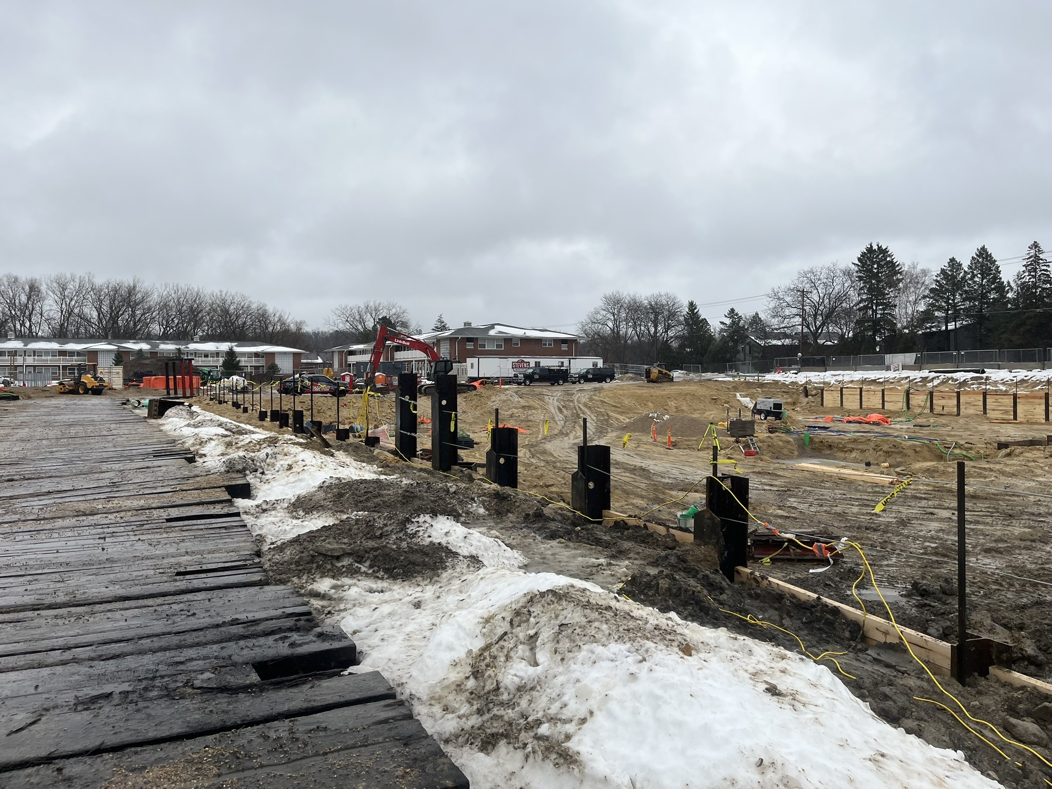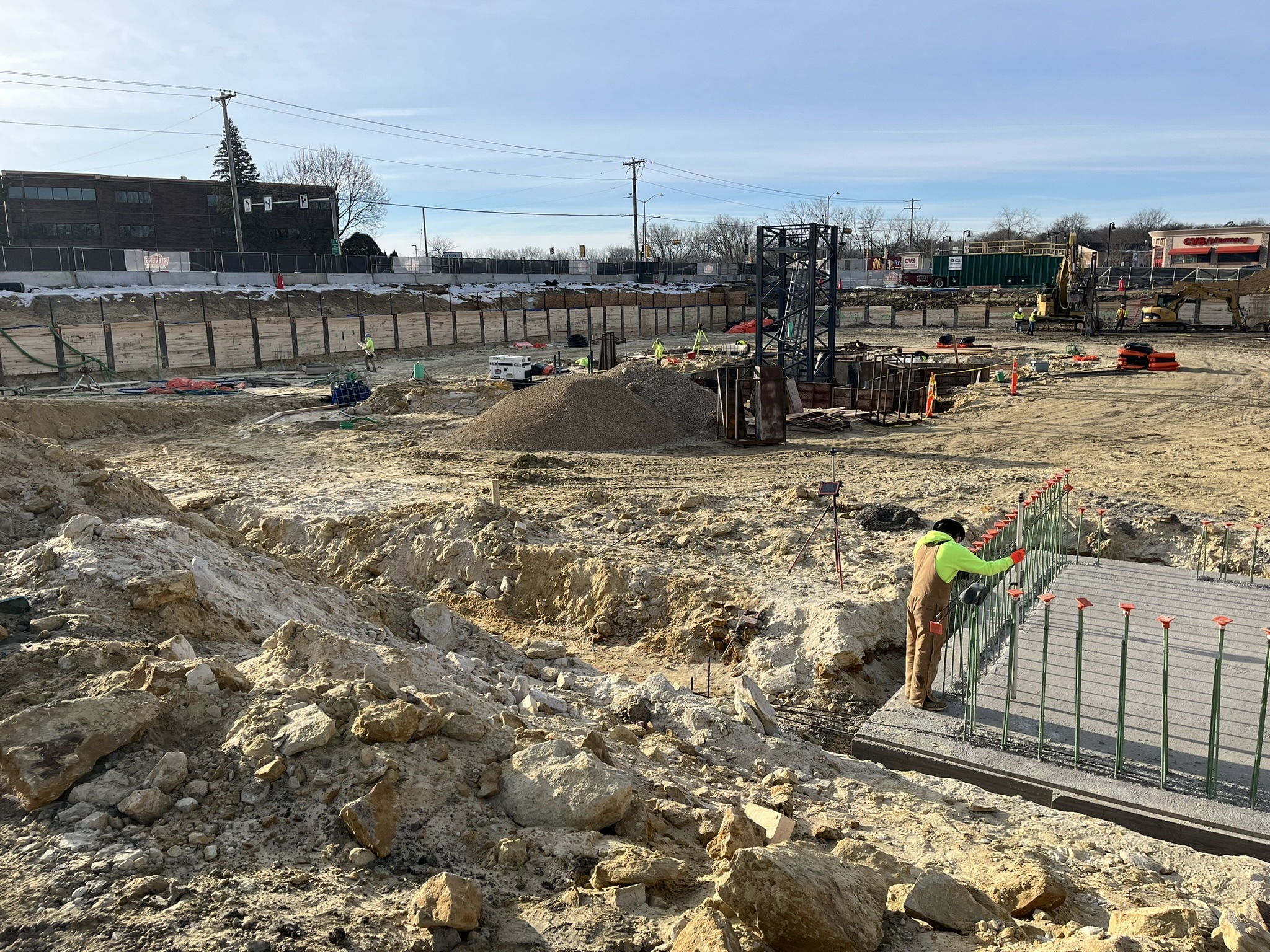 In the photos you’ll see our retention wall, crane pad, pilings, and the dewatering station that’s been hard at work behind the scenes. Big milestone today too—our giant crane is being assembled!